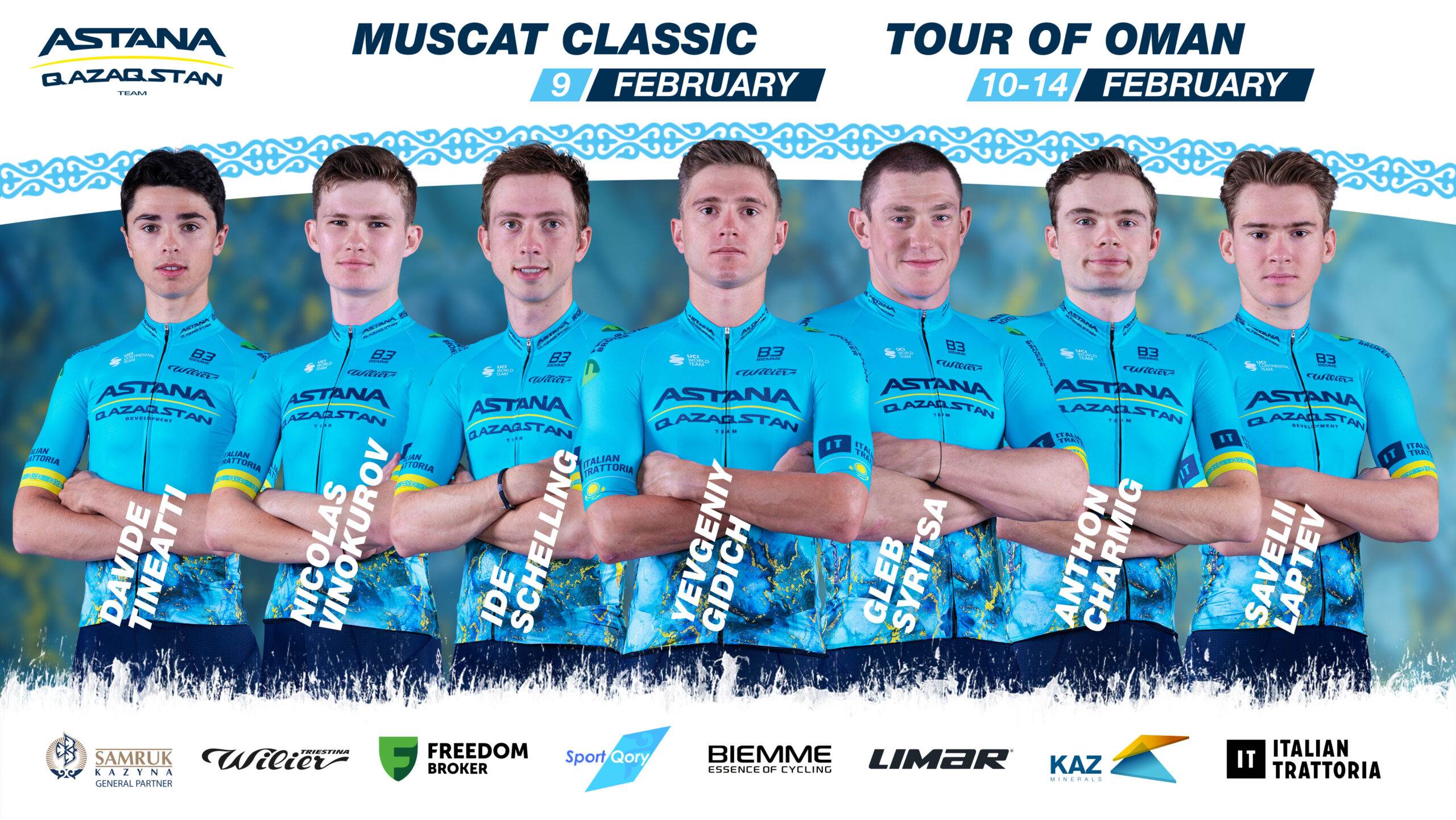 Команда Astana Qazaqstan Team продолжает свою ближневосточную кампанию выступлением на однодневной гонке “Маскат Классик” (9 февраля) и многодневке “Тур Омана” (10-14 февраля).