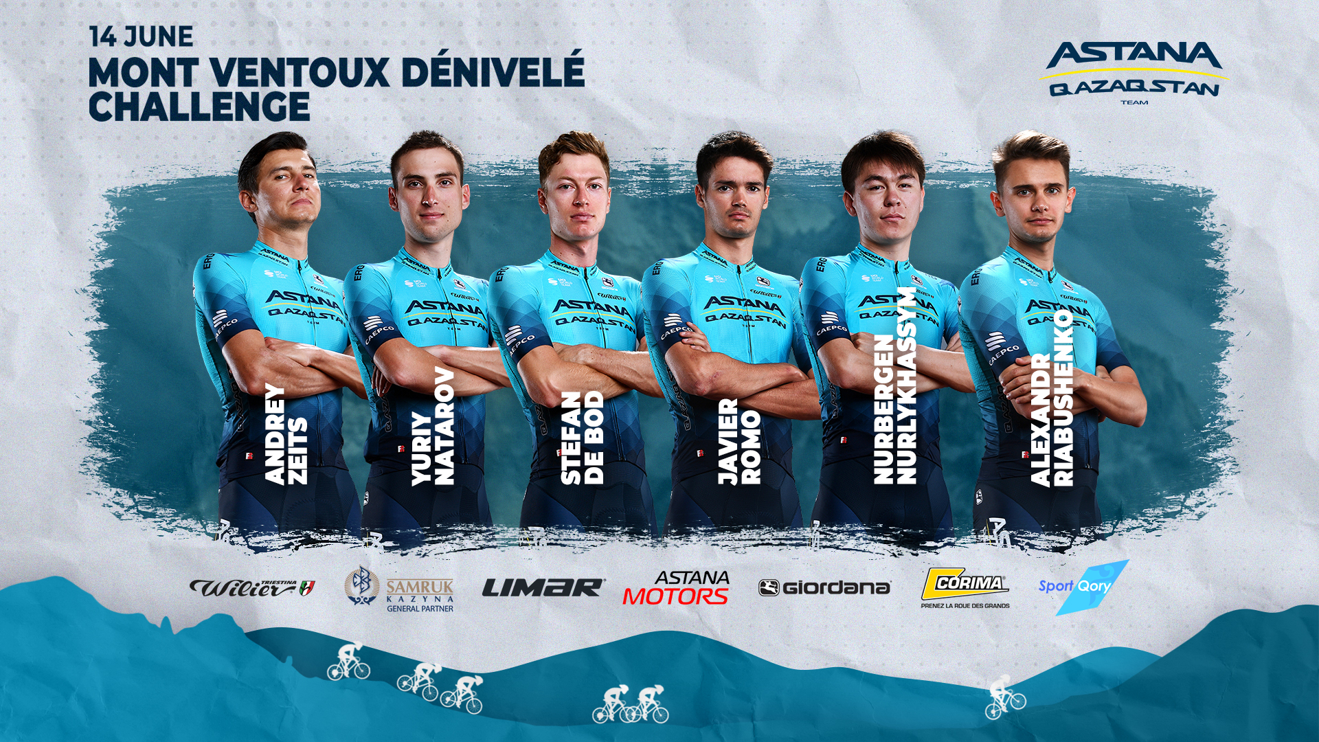 Команда Astana Qazaqstan Team выступит на французской однодневной гонке "Мон-Ванту Челлендж", которая пройдет 14 июня. Состав команды: Стефан Де Бод, Юрий Натаров, Александр Рябушенко, Нурберген Нурлыхасым, Хавьер Ромо, Андрей Зейц. Спортивные директора в гонке: Бруно Ченьялта, Дмитрий Фофонов. При поддержке Генерального партнера "Самрук-Казына"
