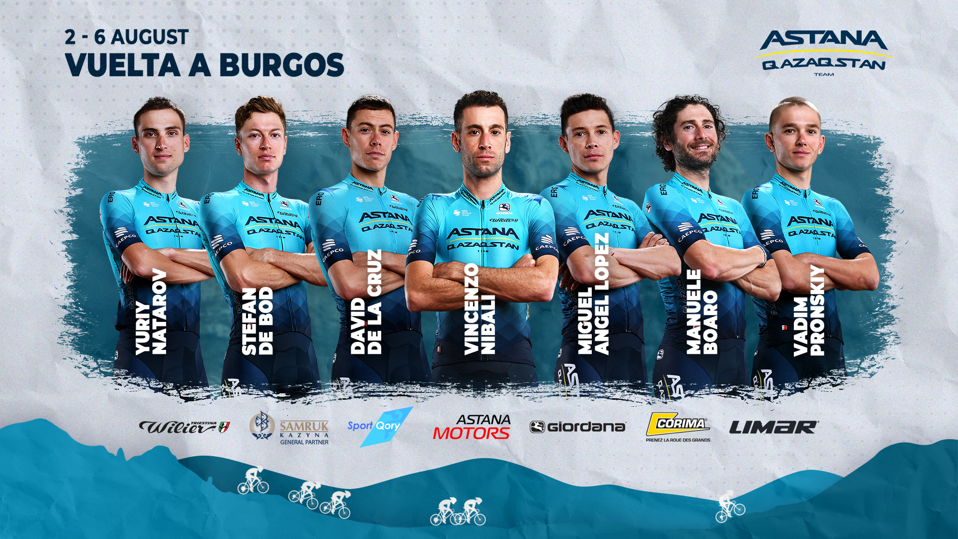 Команда Astana Qazaqstan Team выступит на испанской многодневной гонке "Вуэльта Бургоса", которая пройдет в период со 2 по 6 августа. Состав команды: Винченцо Нибали (Италия), Мигель Анхель Лопес (Колумбия), Мануэле Боаро (Италия), Давид Де Ла Крус (Испания), Стефан Де Бод (Южная