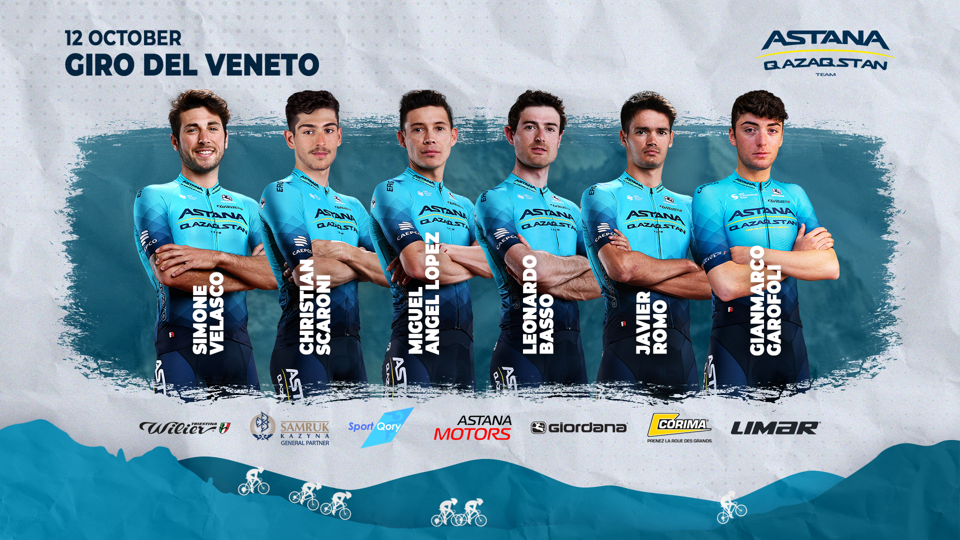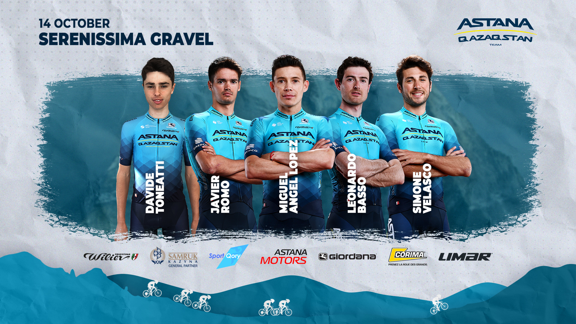 Команда Astana Qazaqstan Team выступит на гравийной гонке "Серениссима Гравел", победителем которой в прошлом году стал Алексей Луценко. Гонка пройдет 13 октября в Италии. Состав команды: Леонардо Бассо (Италия), Мигель Анхель Лопес (Колумбия), Хавьер Ромо (Испания), Симоне Веласко (Италия), Давиде Тонеатти