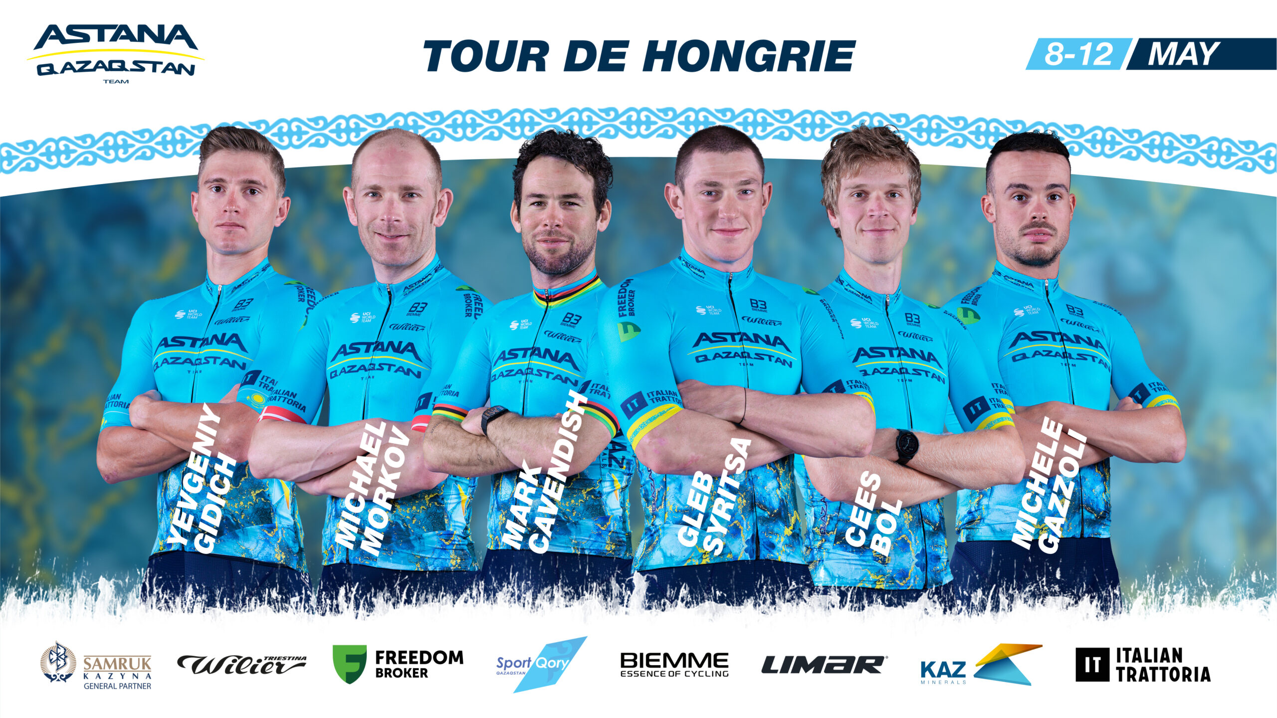 Команда Astana Qazaqstan Team примет участие в многодневной гонке высшей категории "Тур Венгрии", которая пройдет в период с 8 по 12 мая. Состав команды: Марк Кавендиш, Кейс Бол, Микаэль Мёркёв, Евгений Гидич, Микеле Гадзоли, Глеб Сырица. Спортивные директора в гонке: Марио Манцони,