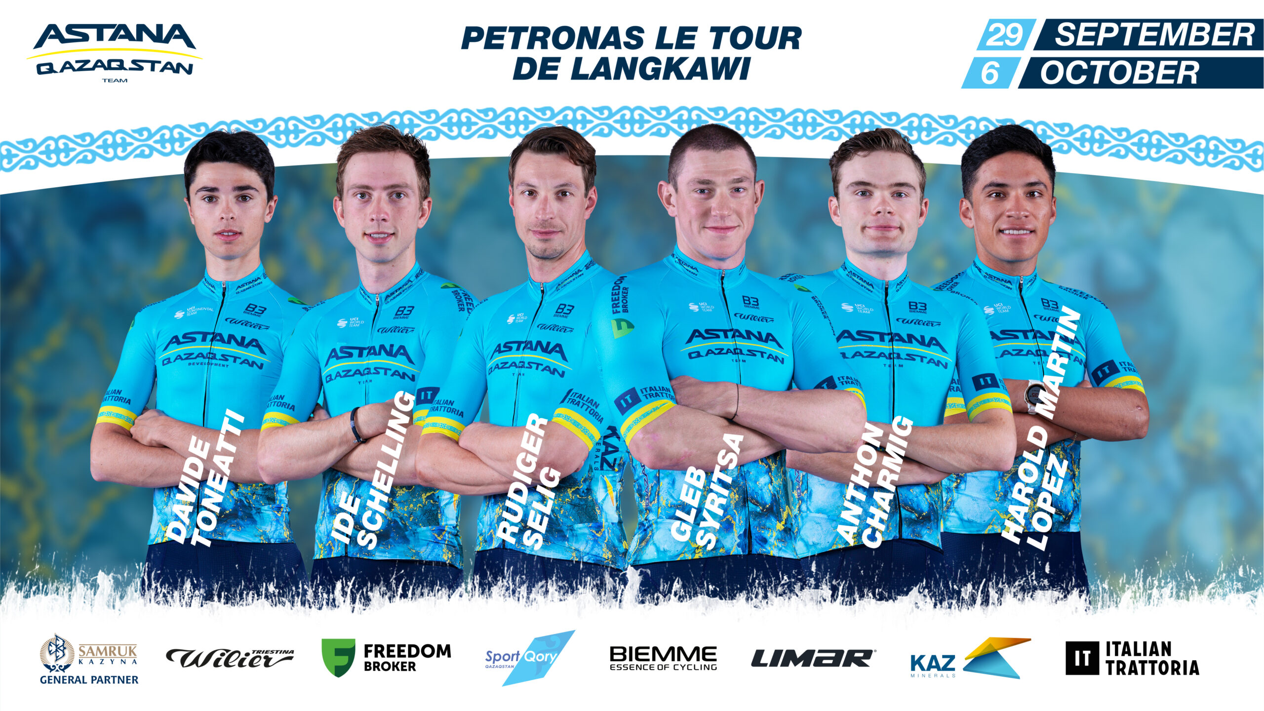 Astana Qazaqstan Team will take part in the traditional 2.Pro stage race Petronas Le Tour de Langkawi, which will be held in Malaysia from September 29th to October 6th. Rider roster: Gleb Syritsa, Anthon Charmig, Ide Schelling, Rüdiger Selig, Harold Martín
