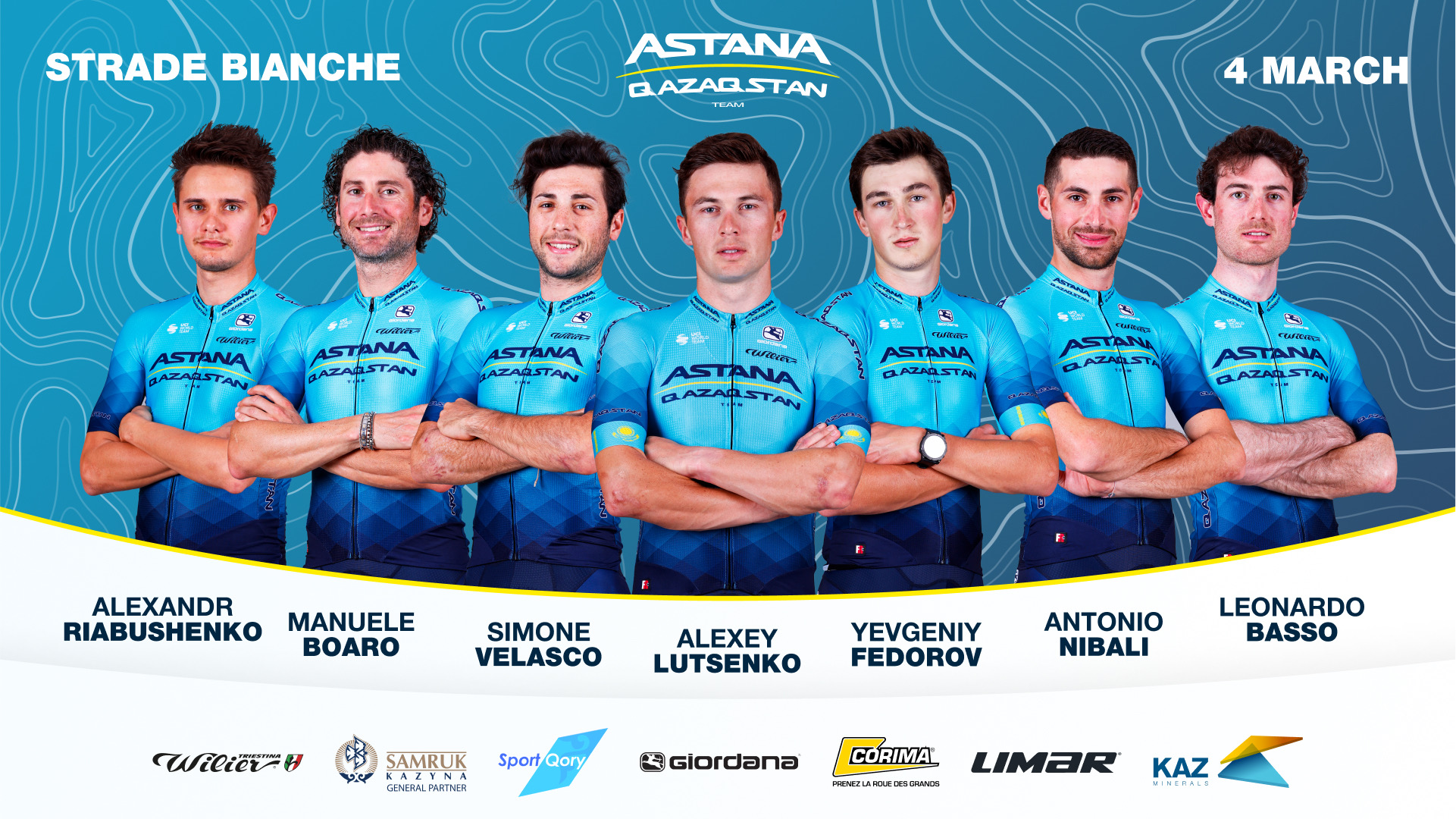 Команда Astana Qazaqstan Team выступит на известной классической гонке "Страде Бьянке", которая пройдет в ближайшую субботу, 5 марта. Состав команды: Леонардо Бассо (Италия), Мануэле Боаро (Италия), Мигель Анхель Лопес (Колумбия), Давиде Мартинелли (Италия), Джанни Москон (Италия), Симоне Веласко (Италия), Микеле Гадзоли