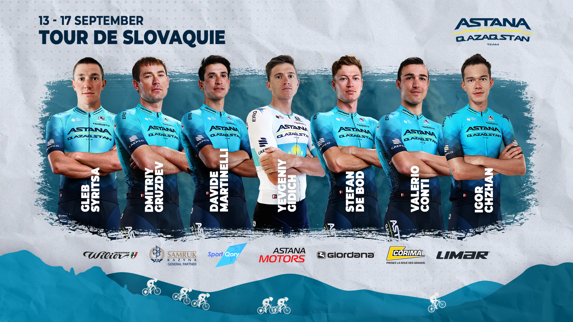 Команда Astana Qazaqstan Team выступит на многодневной гонке "Тур Словакии", которая пройдет в период с 13 по 17 сентября. Состав команды: Стефан Де Бод, Валерио Конти, Евгений Гидич, Дмитрий Груздев, Давиде Мартинелли и два стажера, Игорь Чжан и Глеб Сырица. Спортивные директора