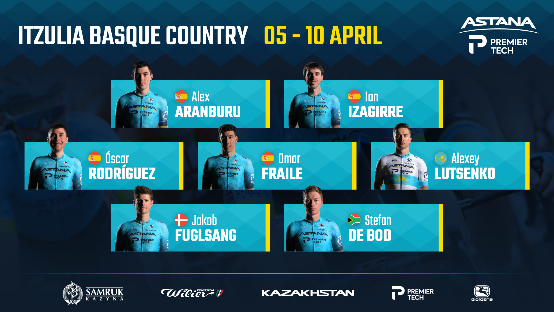 Команда Astana Qazaqstan Team выступит на многодневной гонке Мирового Тура "Тур Страны Басков", которая пройдет в период с 4 по 9 апреля. Состав команды: Стефан Де Бод, Антонио Нибали, Хавьер Ромо, Александр Рябушенко, Юрий Натаров, Себастьян Энао, Андрей Зейц. Спортивные директора в
