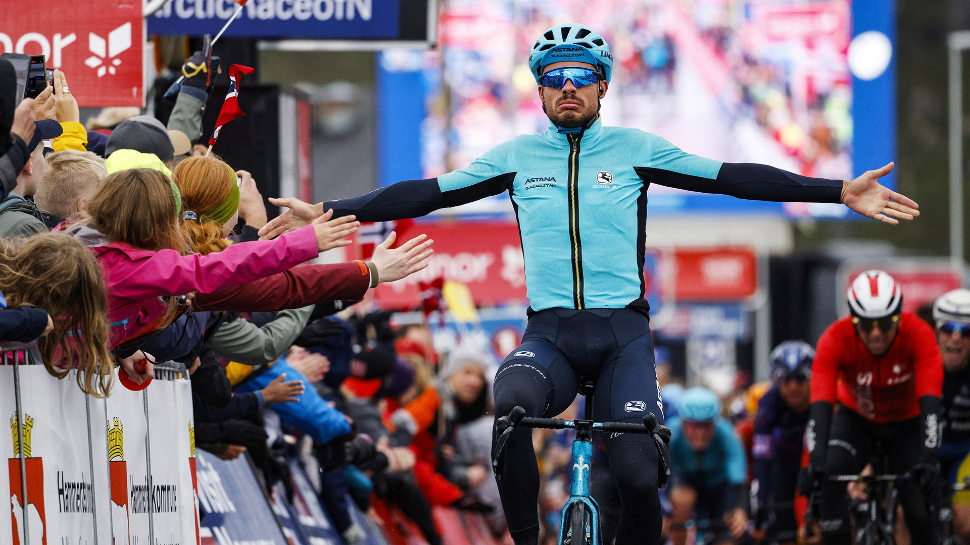 Astana Qazaqstan Team takes a double success in the second stage of the Arctic Race of Norway. In the powerful uphill sprint in Hammerfest Michele Gazzoli (from Astana Qazaqstan Development Team) took a perfect win, while Christian Scaroni finished second. “It