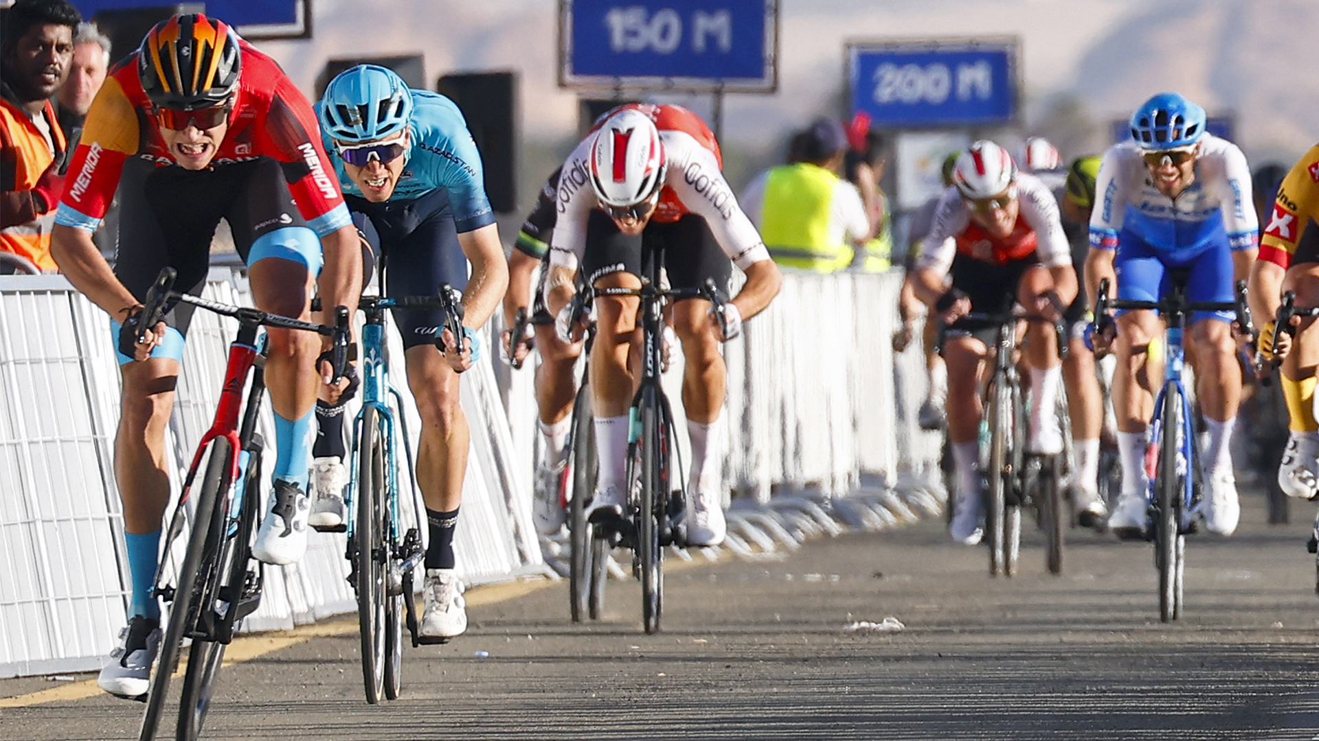 The UAE Tour got an explosive opening Stage 1 from Al Dhafra Castle to Al Mirfa with a crosswind hitting the peloton just from KM 0 of the race. It did not take much time for the echelons to get