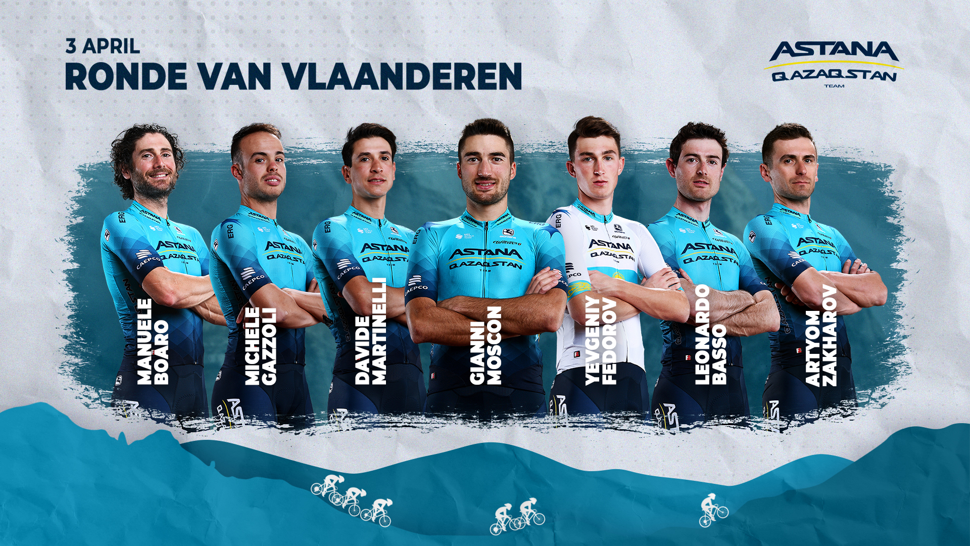 Astana Qazaqstan Team will take part in the second Monumental classic race of the season - Ronde van Vlaanderen - which will be held in Belgium on April 2nd. Rider roster: Yevgeniy Fedorov, Yevgeniy Gidich, Gleb Syritsa, Martin Laas, Dmitriy Gruzdev,