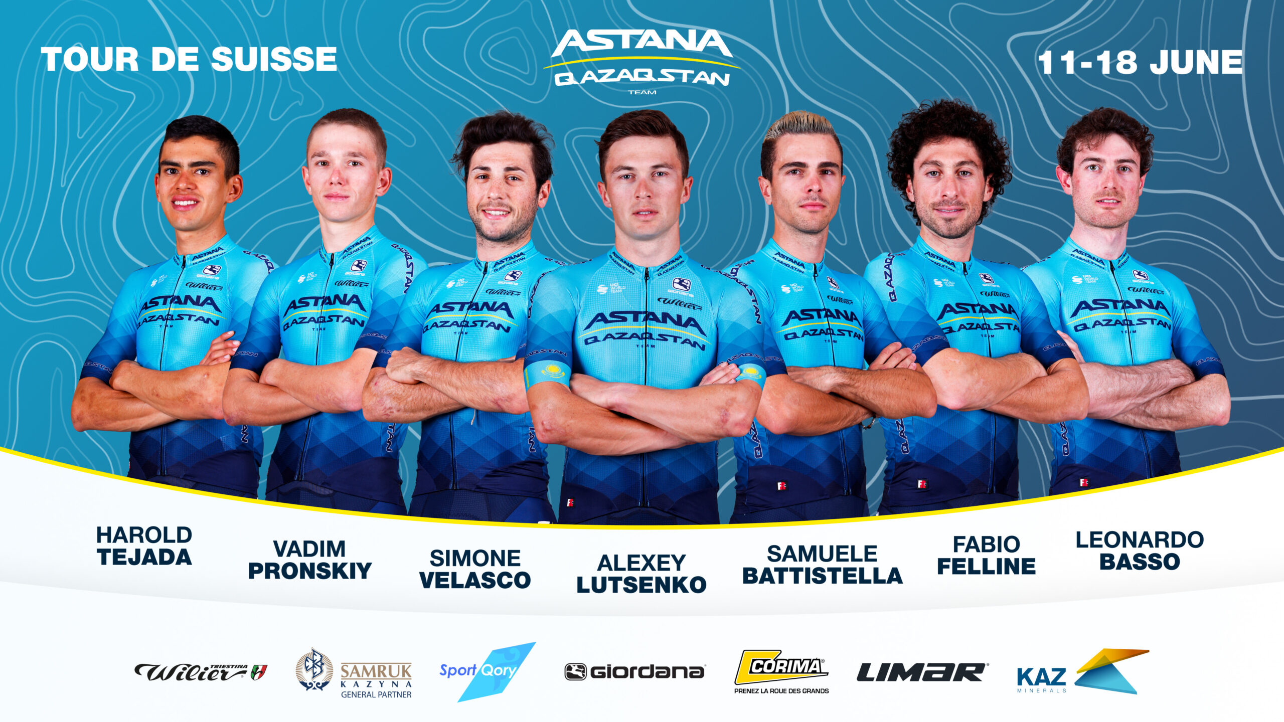 Astana Qazaqstan Team will take part in the UCI WorldTour stage race Tour de Suisse, which will be held from June 11th to 18th. Rider roster: Alexey Lutsenko, Samuele Battistella, Simone Velasco, Harold Tejada, Fabio Felline, Vadim Pronskiy, Leonardo Basso. Sports directors